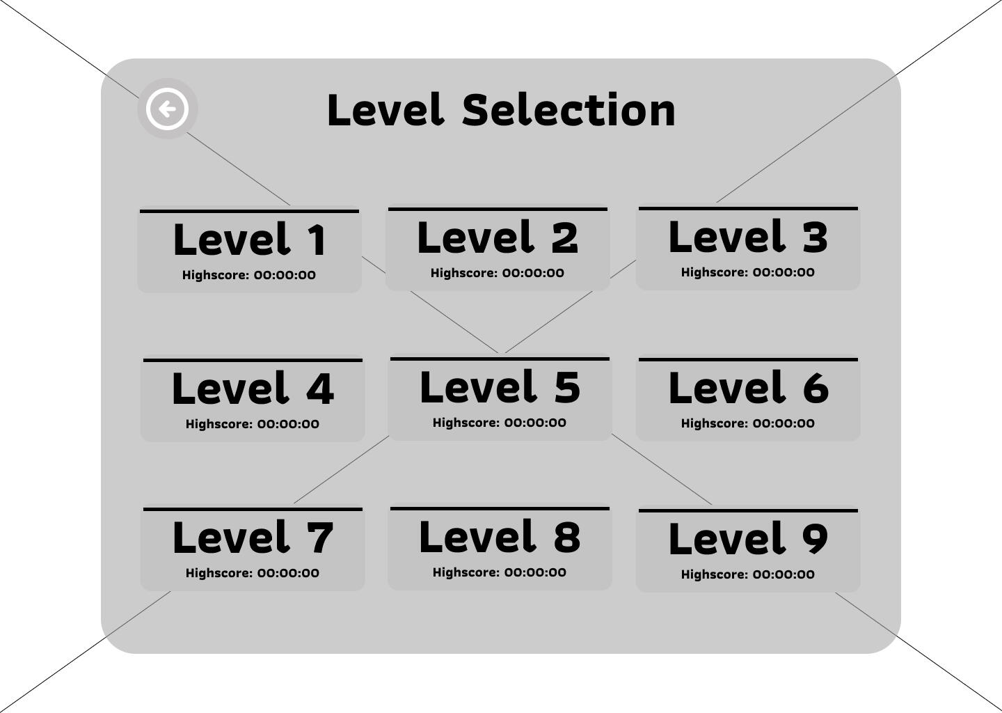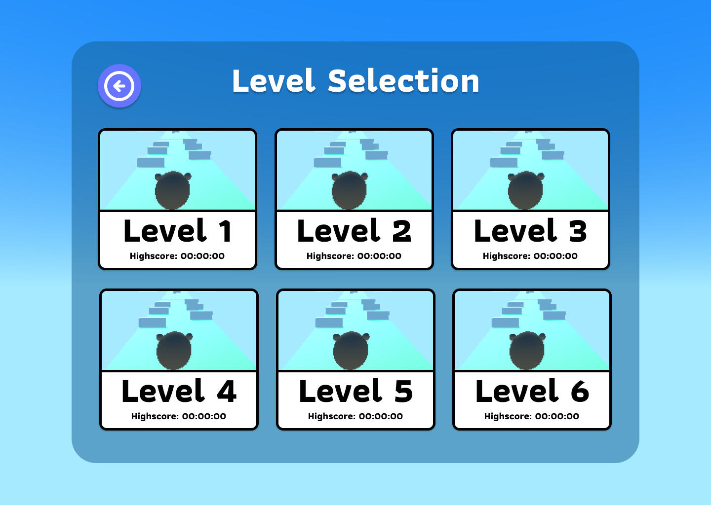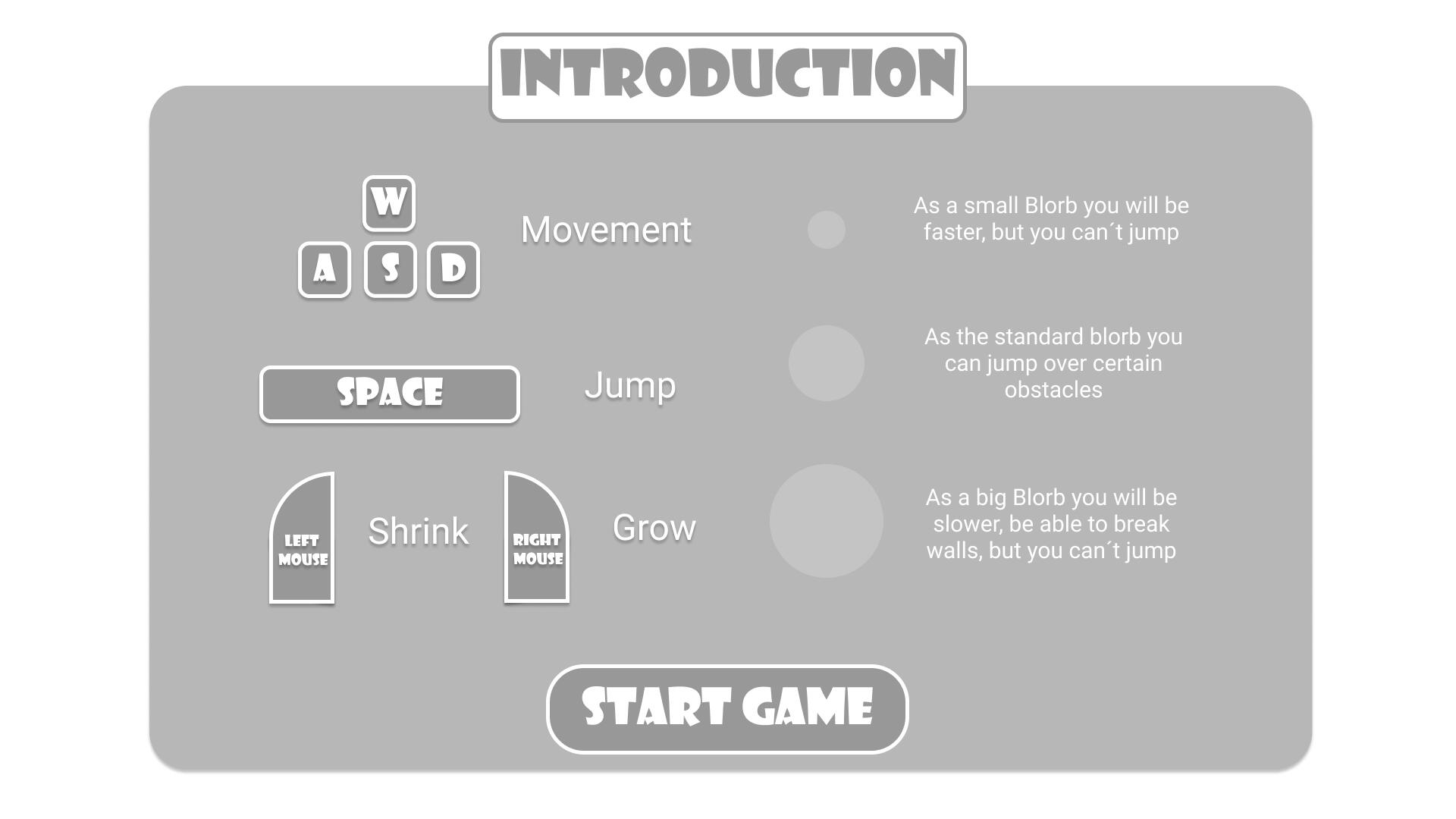 For the level selection, we had two options to choose from. We ended up going for the one closest to the bottom. Why? Since we thought with the pictures above the level it would be too much for the player to look at. We wanted to simplify it and make sure we didn't have to redesign the color scheme if it didn't fit the picture since we were under a short timeframe.