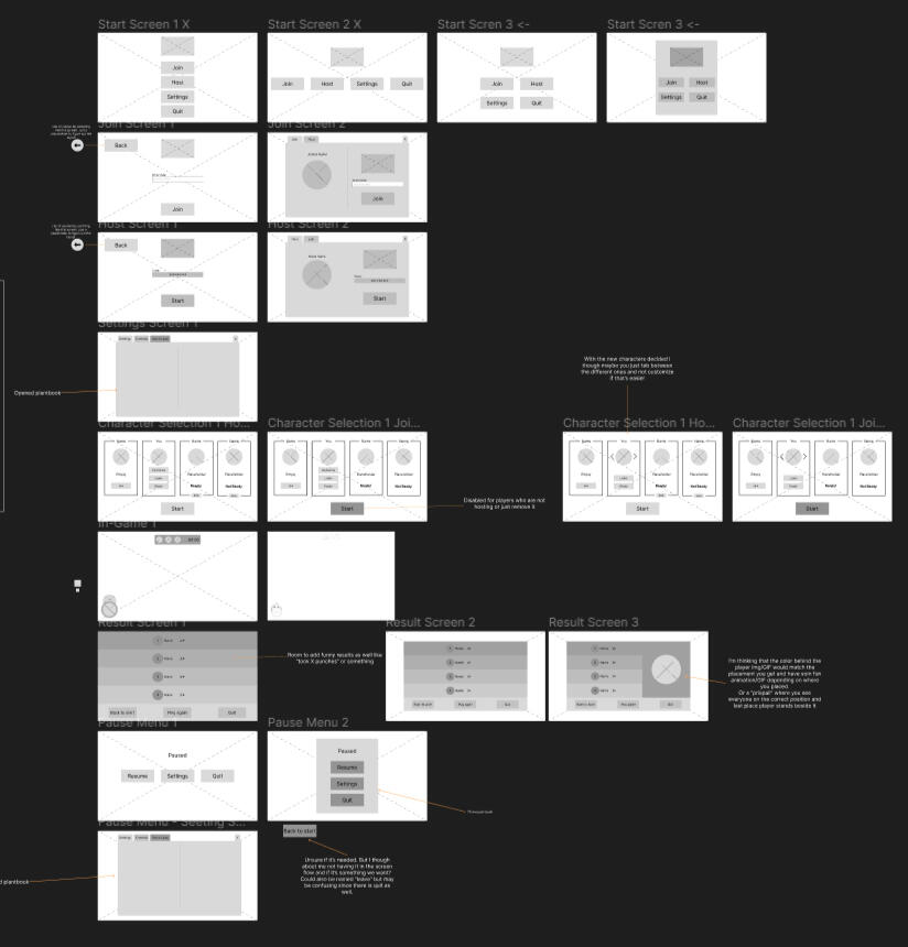 During this project, my role was mainly UX/UI. These are the wireframes I made for the game