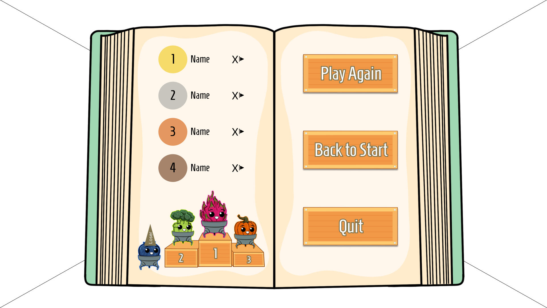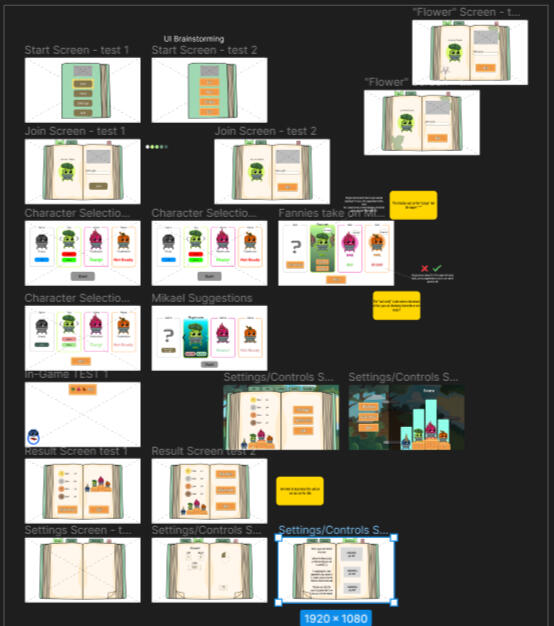 When it came to the character selection and the result screen me and our project manager Mikael Svensson, who also has studied game and UX, together found some cool ways to put our different ideas together to get the best outcome (in high fidelity).Since Mikael wrote the narrative he told me that the book could better be used at the beginning of the menus but as soon as you press start you kind of gets out of the book to play.