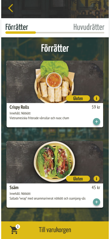 We got some feedback on some things that we did not have in our wireframe and added them to our high-fidelity wireframes. We did not have enough time to make it in the low-fidelity one, but if I could redo it I would like to have it there as well.We got that we should have a notice on the shopping cart so you know that you have added something. Also to have a "delivery" screen, since that is very common in restaurant apps.