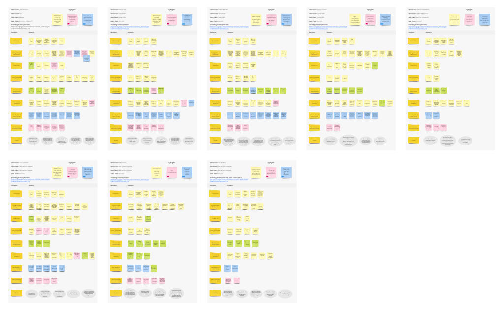 After we analyzed the interviews and put all of their thoughts down in the Miro board to get a clear picture of all the answers we got.Can't show the exact answers, but you'll see an overview